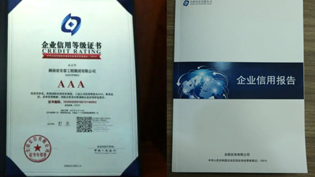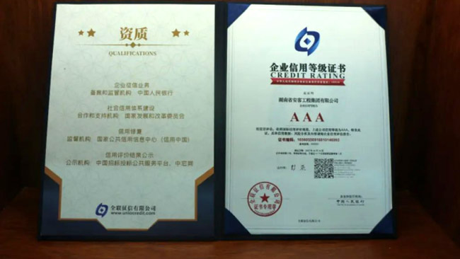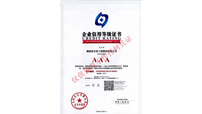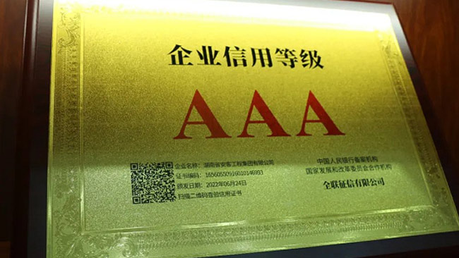 在今年的全國征信評定活動中,湖南省安客工程集團(tuán)有限公司又一次脫穎而出,再度榮冠成為2022年度“企業(yè)信用等級3A”企業(yè),為集團(tuán)品質(zhì)品牌升級邁向新的高度,凝聚更多力量,注入更多動能。
